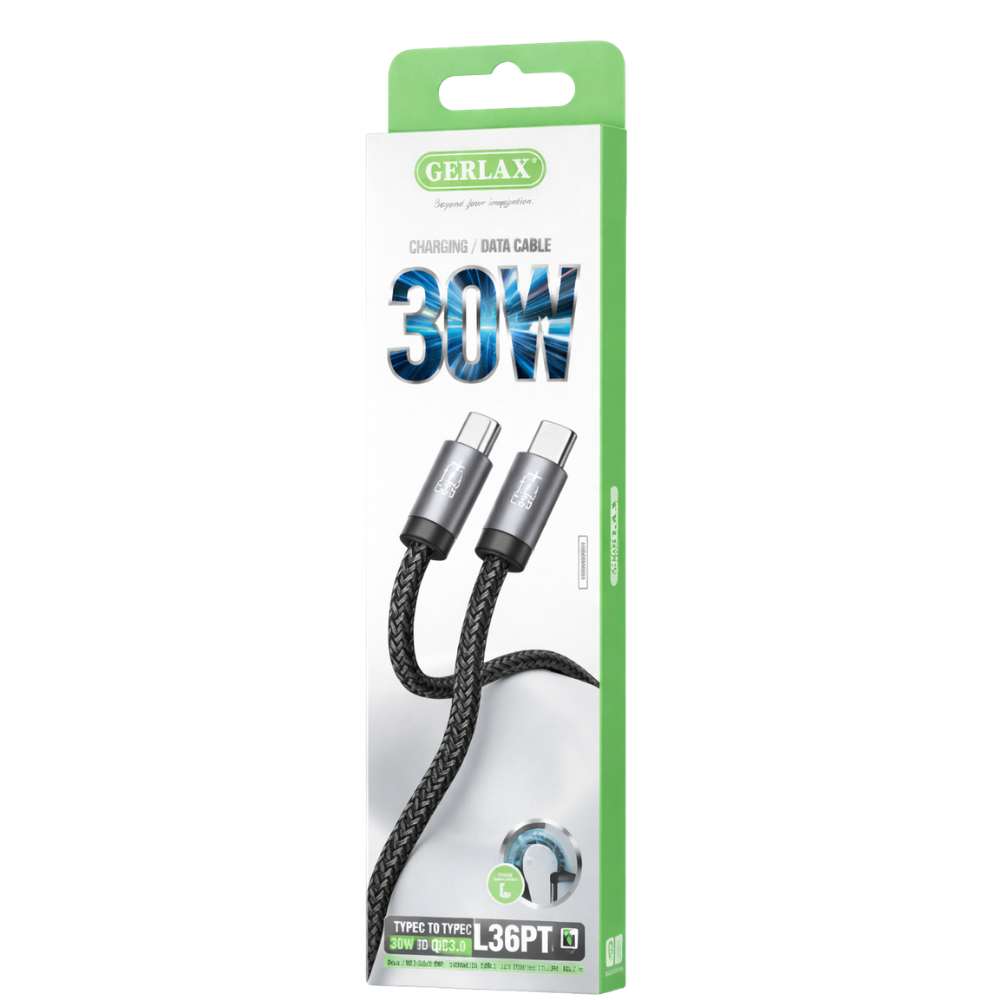 Le CABLE GERLAX 30W (L36PL) est conçu pour offrir une charge rapide et performante à tous vos appareils Apple. Avec une puissance de 30W, il garantit une augmentation de 50% de la vitesse de charge par rapport aux câbles standards, pour une recharge efficace en un minimum de temps.