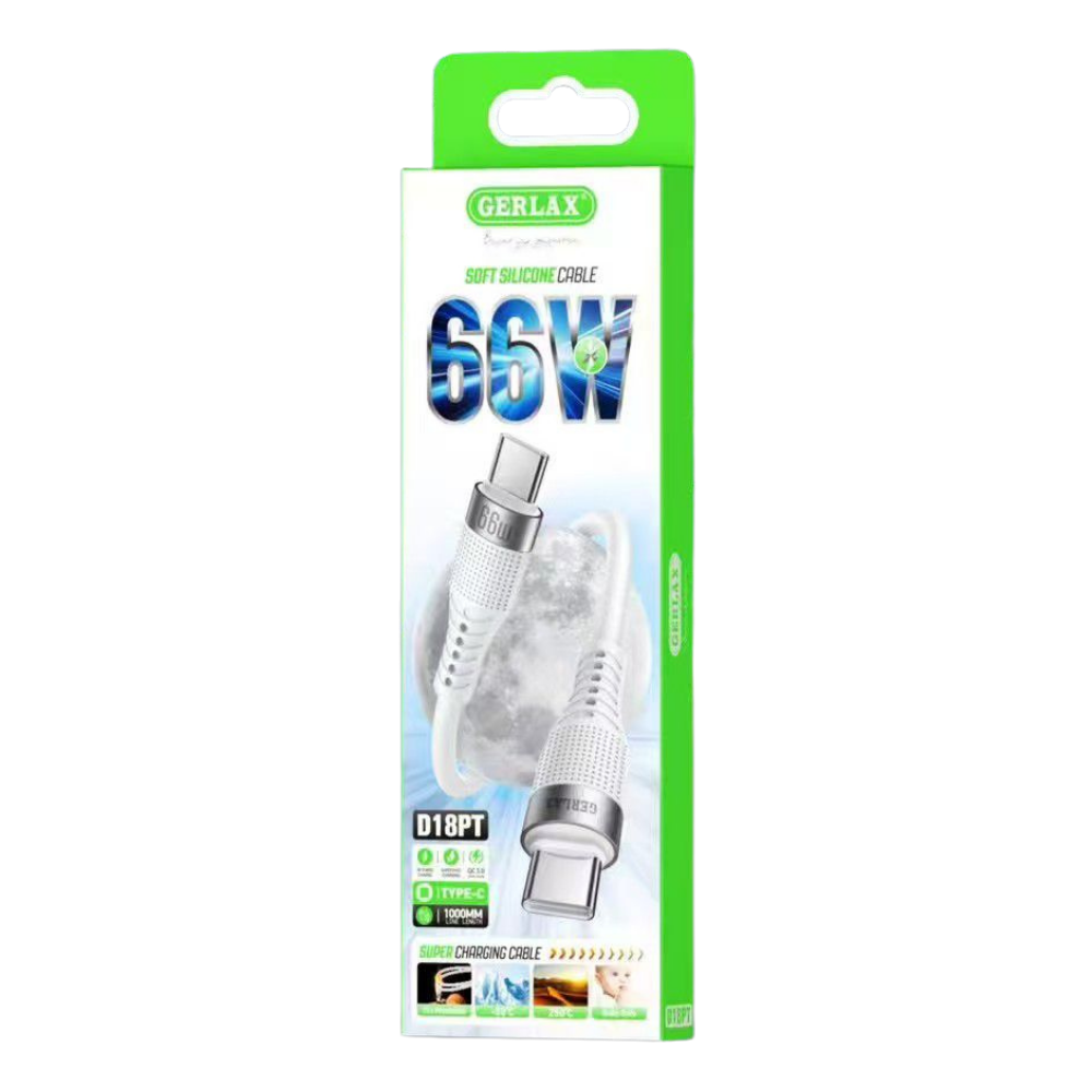 Le câble GERLAX D18PT  est conçu pour offrir une charge ultra-rapide et performante à tous vos appareils compatibles USB-C. Avec une puissance de 66W, il garantit une recharge express et une synchronisation rapide des données, idéale pour les smartphones, tablettes, ordinateurs portables et autres équipements de dernière génération.