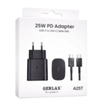 Le chargeur complet Gerlax A25T 25W est conçu pour offrir une charge rapide et fiable pour vos appareils. Il est équipé d’une tête de charge Type-C et d’un câble Type-C vers Type-C, permettant une transmission d’énergie efficace et stable.
