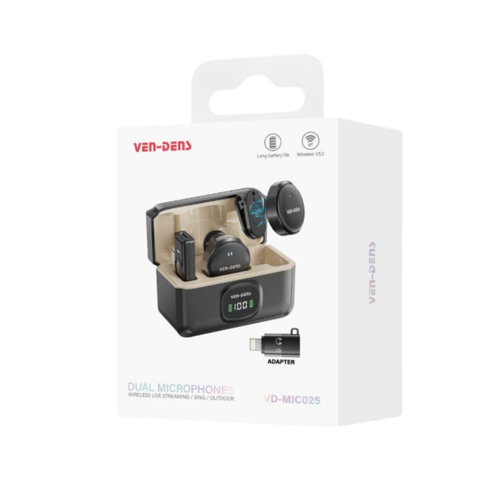 Le VEN-DENS VD-MIC025 est un microphone sans fil double conçu pour offrir une qualité audio professionnelle avec une grande autonomie.