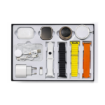 Le Pack HR93 Suit est un coffret technologique complet 13 en 1 qui combine montre connectée, écouteurs Bluetooth, haut-parleur portable, chargeur sans fil et plusieurs accessoires intelligents dans un seul pack.