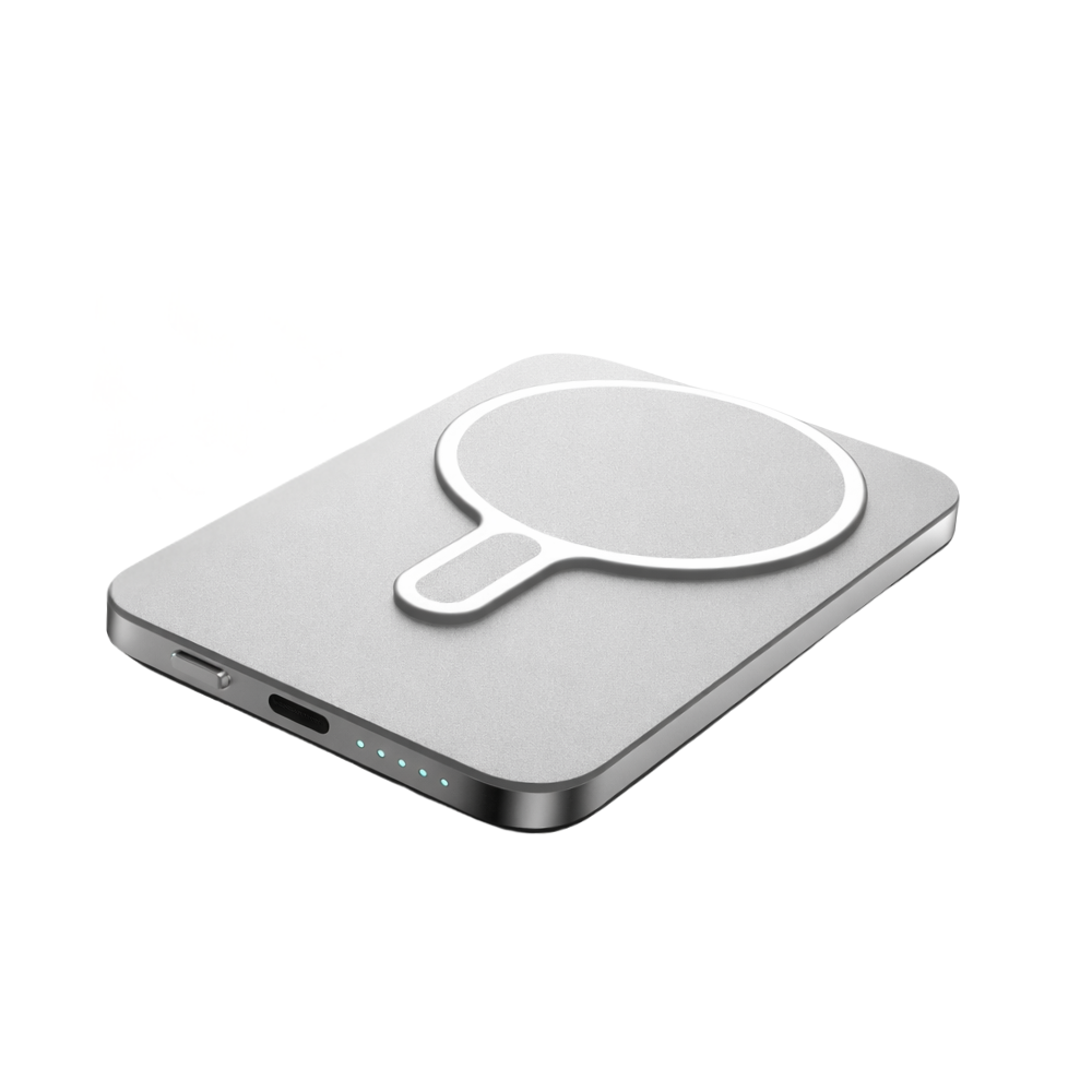 La Power Bank MagSafe 5000 mAh est une batterie externe ultra-plate et légère, conçue pour une utilisation nomade sans encombrement. Grâce à sa fixation magnétique intégrée, elle se colle parfaitement à l’arrière des smartphones compatibles iPhone et Android (avec coque ou système MagSafe) pour une recharge sans fil pratique et immédiate. Son poids et son format sont assimilables à ceux d’un smartphone, ce qui la rend discrète et facile à transporter au quotidien.
